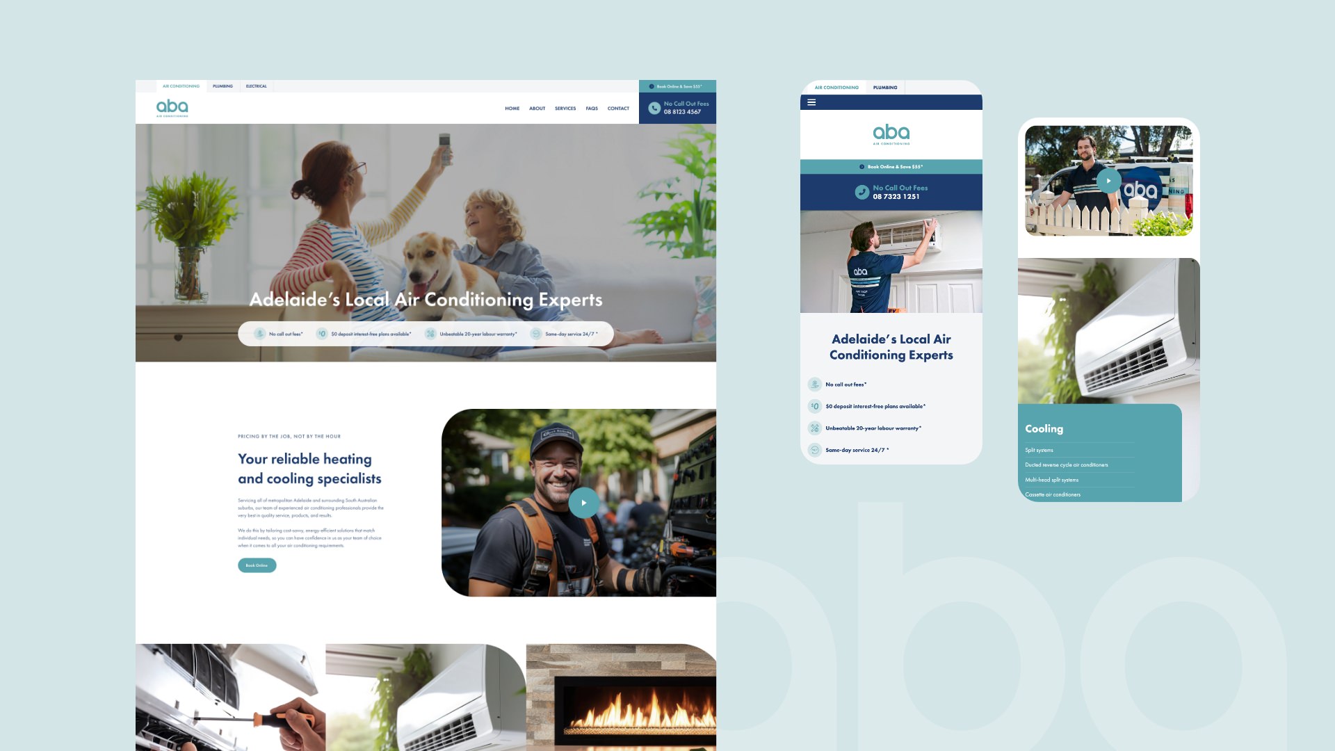 Originally built and launched as a streamlined one-page website, our team created the ABA Air Conditioning site in such a way that it would be easy to grow and add additional pages when they were ready.