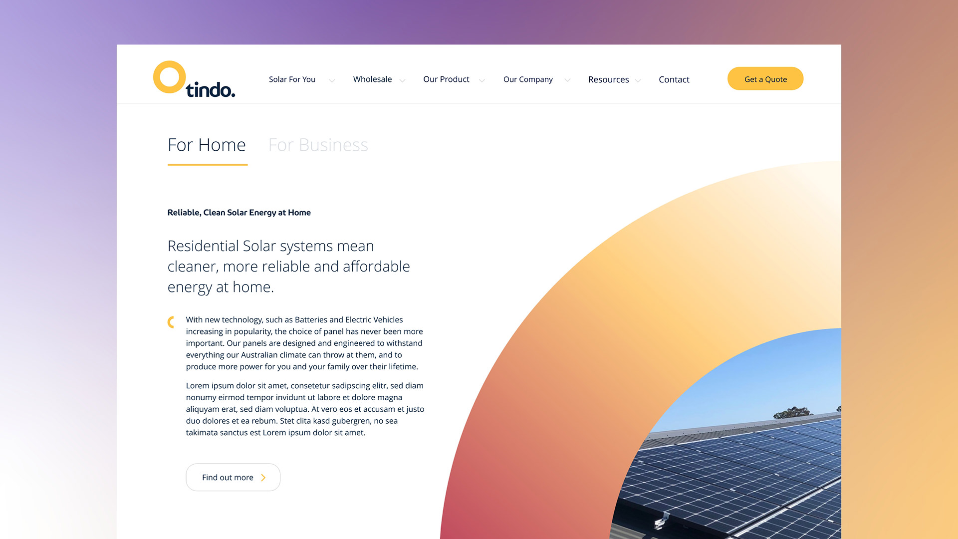 Tindo Solar came to us wanting to update their online presence with a website that better represented the business they had become.